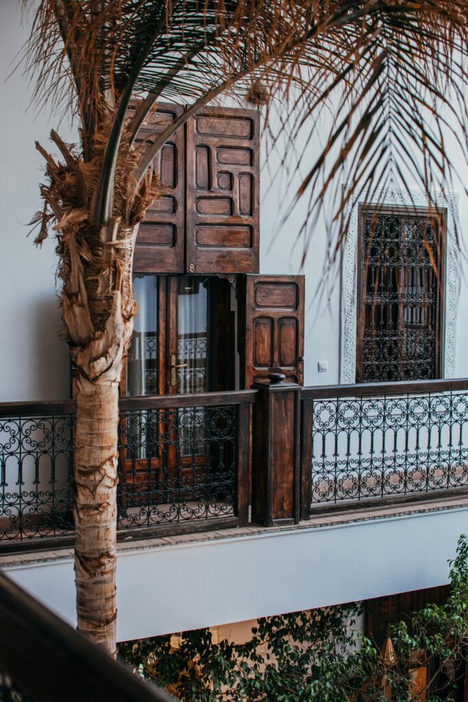 استخدم أيضاً النوافذ بحيث تسمع للضوء بالدخول ولكن بأكبر قدر من الظل وذلك من خلال القطع الخشبية المزخرفة ، كذلك بنى الفناء في وسط المنزل وحوله الغرف بحيث تستمد الضوء من داخل المبنى مع أقل درجة من حرارة الشمس وأعلى قدر من الخصوصية .