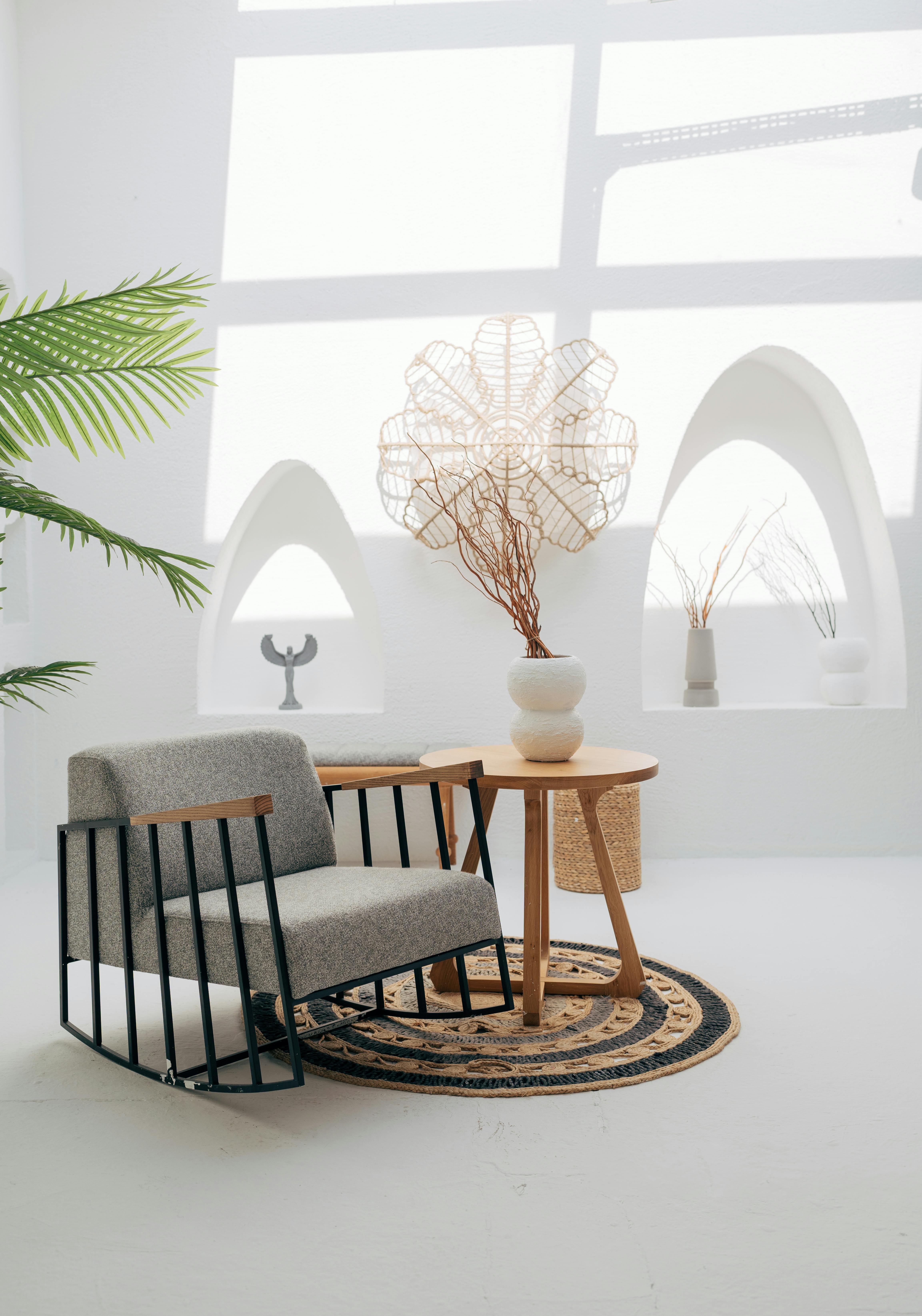- الألوان المستخدمة: أبيض، رمادي فاتح، ألوان باهتة، لمسات من الخشب الفاتح.